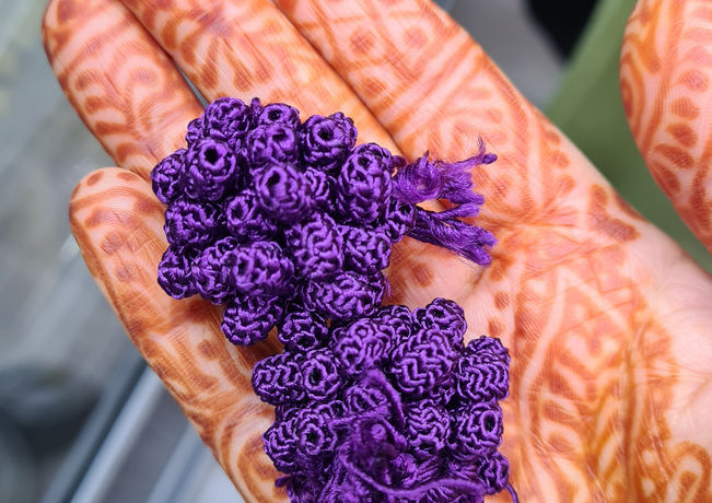 *„Sfifa“ ist eine marokkanische Zierborte, die traditionell aus Seide, Viskose oder Metallfäden gewebt wird. Sie wird vor allem zur Verzierung von Kaftans und Kissenbezügen verwendet.